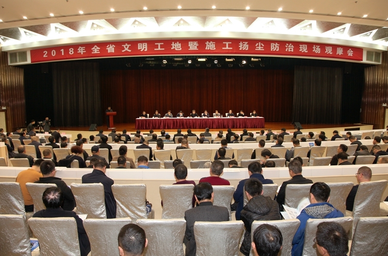 11月14日,陕西省住房和城乡建设厅在西安曲江宾馆组织召开2018年全省文明工地暨施工扬尘防治现场观摩会。