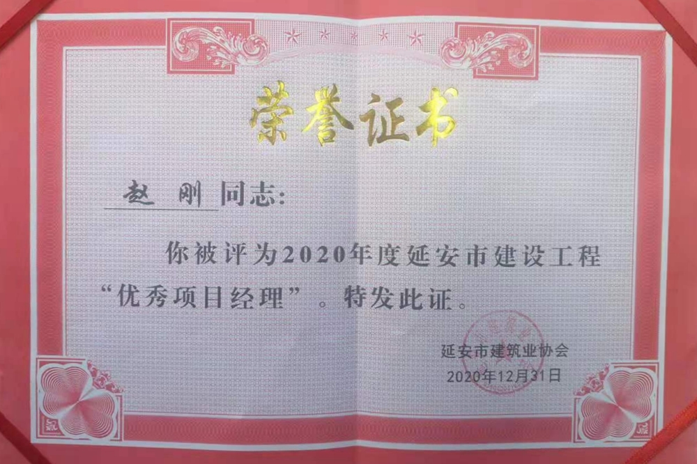 近日,在延安市建筑业协会主办的2020年度建设工程优秀项目部和优秀项目经理表彰中,我集团五公司延安海丽金爵(一期)项目部喜获“2020年度延安市建设工程优秀项目部”荣誉称号,项目负责人赵刚被评为“2020年度延安市建设工程优秀项目经理”称号。
