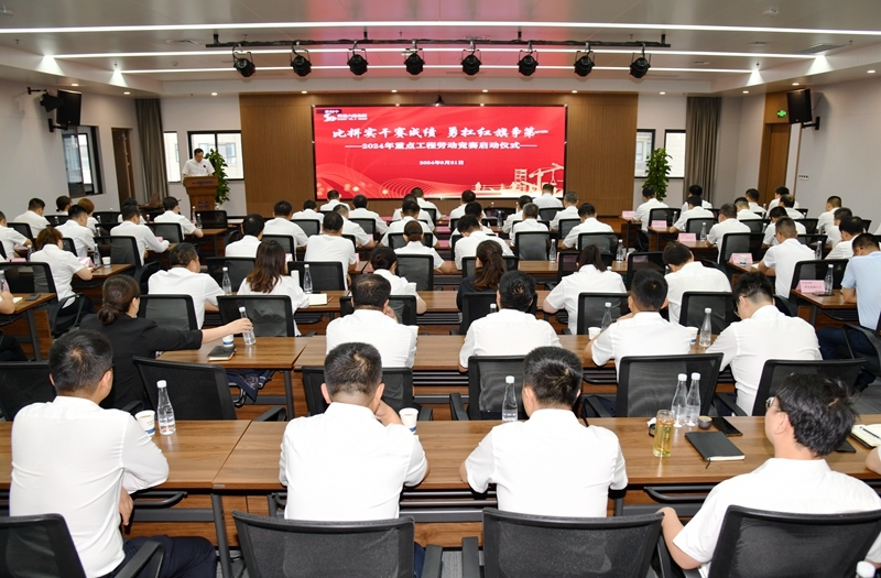 会上,张高峰宣读了《关于开展集团公司2024年重点工程劳动竞赛通知》。王鹏、张高峰为劳动竞赛参赛队伍授旗,赵村城中村改造项目负责人王斌作代表发言。