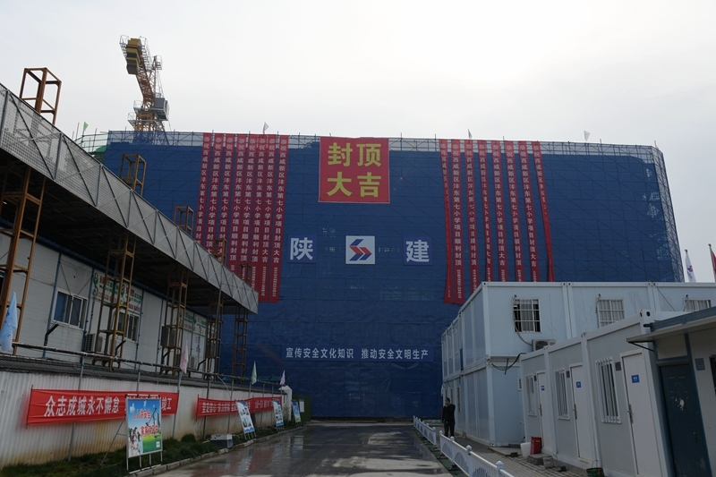 沣东第七小学项目是西咸新区的重点民生工程,由教学楼、行政楼、报告厅、实验教室、食堂等五个单体建筑及地下车库组成,总建筑面积40777㎡。建成后将解决当地1800多名学生上学问题,计划于今年6月30日竣工,9月招生开学。