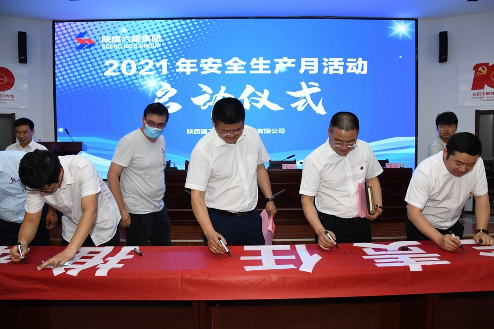 启动仪式上,王鹏作重要讲话,并宣布“安全生产月”活动启动。帖秋作动员讲话,马倡宣读集团《关于开展2021年“安全生产月”活动的通知》,马攀、陈旭分别代表各分公司和各在建项目作表态发言。