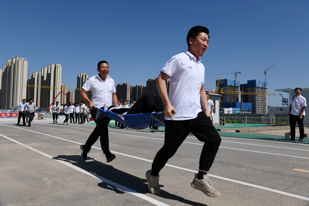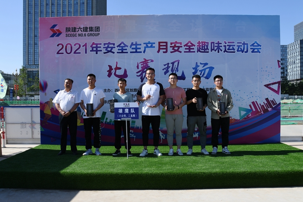 下午的安全趣味运动会共分为岗位安全传递一句话、比戴安全带、单手穿衣、接力灭火、运送伤员、你比我猜、快乐运气球、众人一条心等八个活动,来自集团公司各基层单位的12个代表队通过积极快乐的竞争,八公司、二直属联队最终夺魁,获得第一名,一公司代表队获第二名,二公司代表队获第三名,四公司代表队获第四名。
