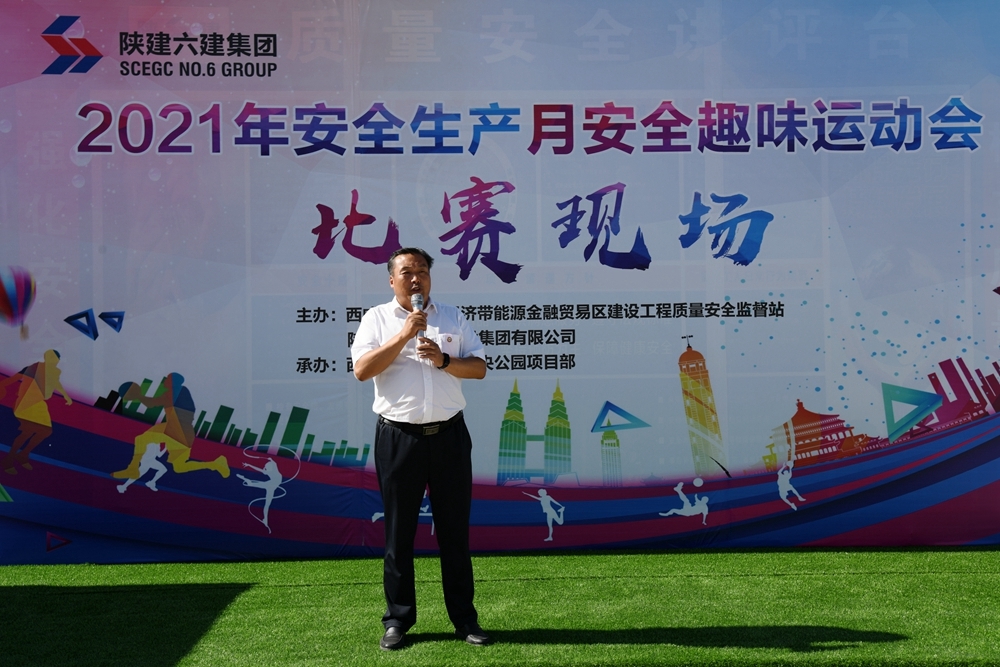 6月4日,集团在西咸能源金贸区中央公园项目部举办了2021年“安全生产月”活动启动仪式和安全知识竞赛及安全趣味运动会活动,集团公司总经理、党委副书记王鹏,副总经理帖秋、工会副主席黄岳平、安全管理部部长马倡及相关部室负责人,各分公司和项目管理人员136人等参加了本次活动。
