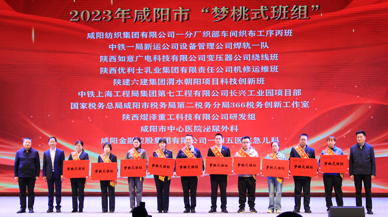11月10日,咸阳市总工会举办“梦桃式班组”命名大会暨“牢记亲切勉励 传承梦桃精神”主题分享活动,大会表彰了10个班组为“梦桃式班组”并颁奖,陕建六建集团渭水朝阳项目科技创新班获此殊荣。