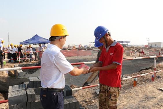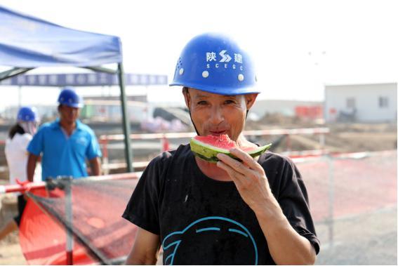 CEC·咸阳8.6代液晶面板生产线项目总投资280亿元,是省重点工程,工期紧,任务重,无论高温影响有多大,施工进度不能中断。对此,我集团公司及项目部积极采取有效应对措施,确保施工按期推进。项目部合理调整作业时间,为每个施工班组配备了防暑降温药品,作业前由组长按量统一领取并发放给每个作业人员,身体一有不适即可及时服用调养。同时,在施工现场定点设置绿豆汤饮用区,方便作业人员随时饮用。此外,集团公司工会、团委积极开展深入一线送慰问和送“清凉”活动。工会为项目部送去了防暑降温慰问金,团委组织机关二十多名青年志愿者开展了为期两天的“送清凉”志愿服务活动,将绿豆汤、茶水、西瓜、冰棍、藿香正气水、清凉油等慰问品送到现场的每一位施工人员手中,并叮嘱他们注意休息、注意身体。