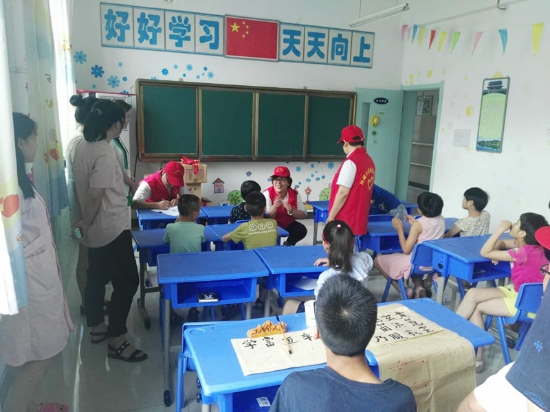 当天,大家在教室里给孩子发放了精心准备的水杯、毛巾、纸巾、牙膏牙刷和香皂等生活用品,并与他们聊天、玩游戏,给他们讲解学习过程中要注意到的问题,并嘱咐他们夏季要多喝水,尽量减少户外活动。随后,教管老师带领大家参观了活动室、康复室、学生作品和奖状展示墙,给大家详细讲解了孩子们学习生活的基本情况。