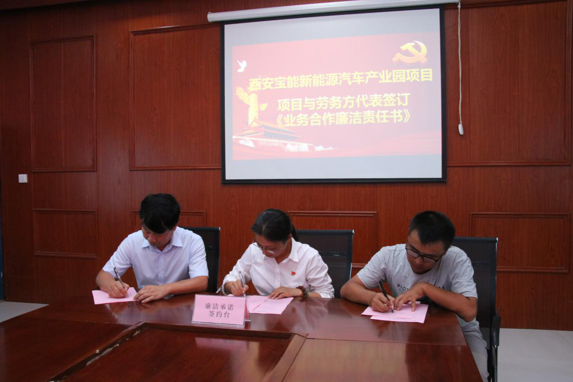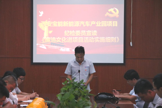 8月31日,直属工程部西安宝能新能源汽车产业园项目部举办了主题为“打造廉洁工程,实现两个管理提升”的廉洁文化进项目启动仪式。宝能项目负责人陈国良、项目执行经理苏斌、劳务方代表及项目管理人员70多人参加了会议。启动会由直属工程部党支部副书记袁娅娟主持。