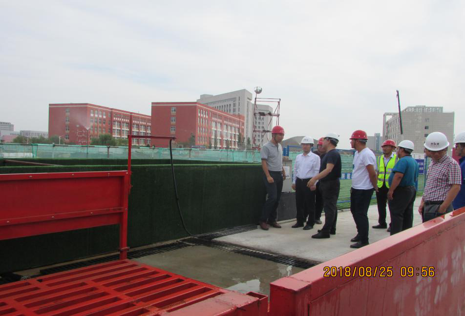张胜利一行首先听取了项目进展、扬尘治理等方面的工作汇报,随后对施工现场的防尘覆盖情况及洗车台、喷淋系统、雾炮机等除尘减霾设备的日常运行情况进行了全方位检查。张胜利对我项目部扬尘治理工作所取得的成绩给予了肯定,希望项目部继续高度重视扬尘治理工作,要将扬尘治理工作作为常态化工作纳入施工管理的全过程,一定要把榆林职业技术学院体育馆项目建设成为榆林市扬尘治理工作示范项目。