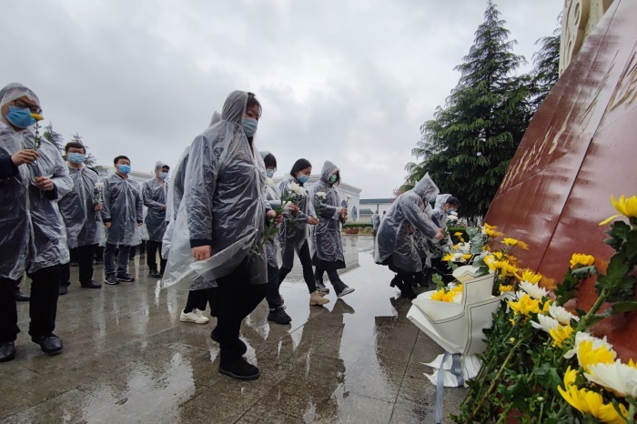 集团20名青年职工代表身穿深色衣服,胸佩党徽或团徽,手持鲜花庄严肃穆,全程参与祭扫活动。在活动最后,大家缓缓步入陵园,瞻仰革命烈士纪念碑敬献鲜花并鞠躬致敬。