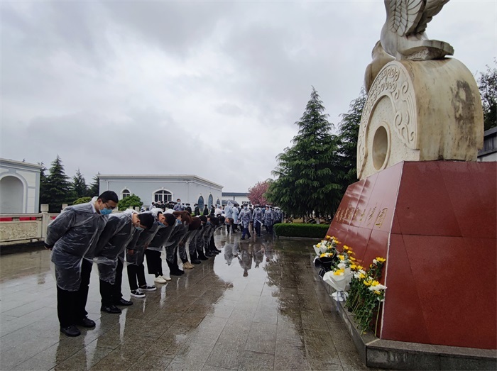 4月2日上午,咸阳市“守护·2021清明祭英烈”清明烈士祭扫活动在咸阳市革命烈士陵园举行。市委市政府相关部门、各大中专院校、市直机关企事业单位代表冒雨齐聚陵园参加祭扫,缅怀英烈,共寄哀思。陕建六建集团机关、一公司和市政公司共20名青年职工代表参加活动,并向革命烈士敬献鲜花。
